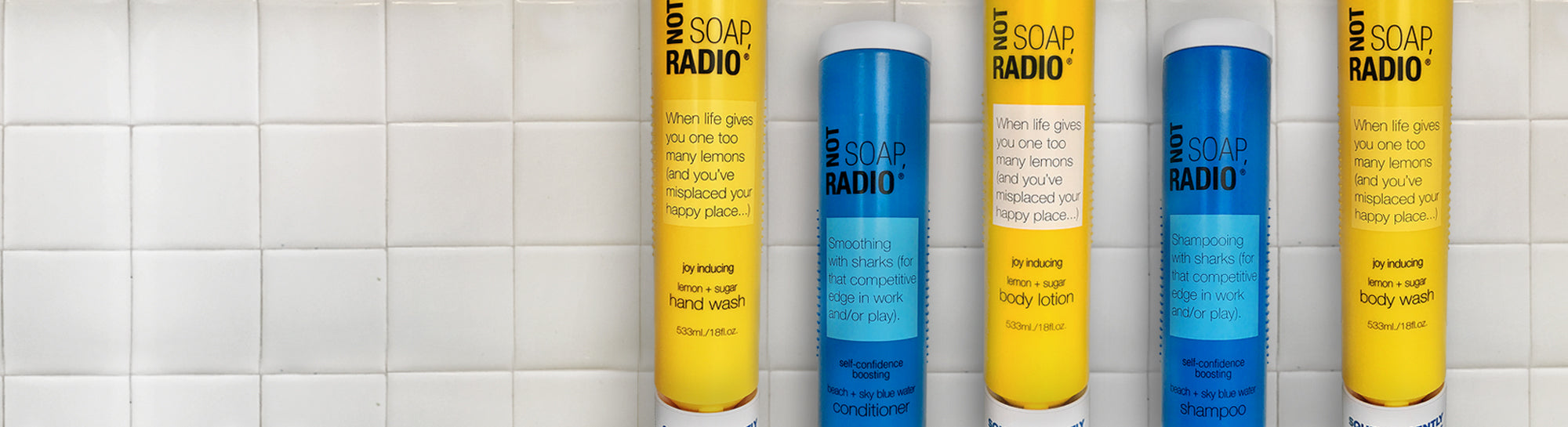 The collection consists of: 18 oz shampoo, conditioner, body wash, hand wash, lotion and wall mounts (with instructions!) And refills without bracket. All can stand upright without the mounts too.