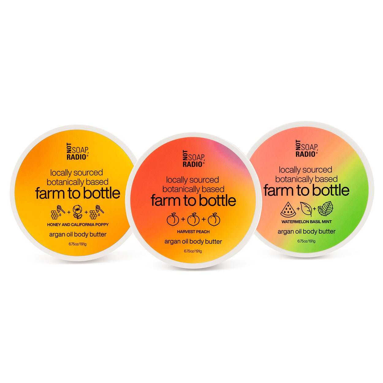 Meet your new moisturizing ritual:three rich, argan-oil based body butters whipped to velvety perfection and infused with botanicals straight from small local purveyors. Each decadent jar melts into skin for long-lasting moisture, immediate glow, and aromatherapeutic mood benefits.