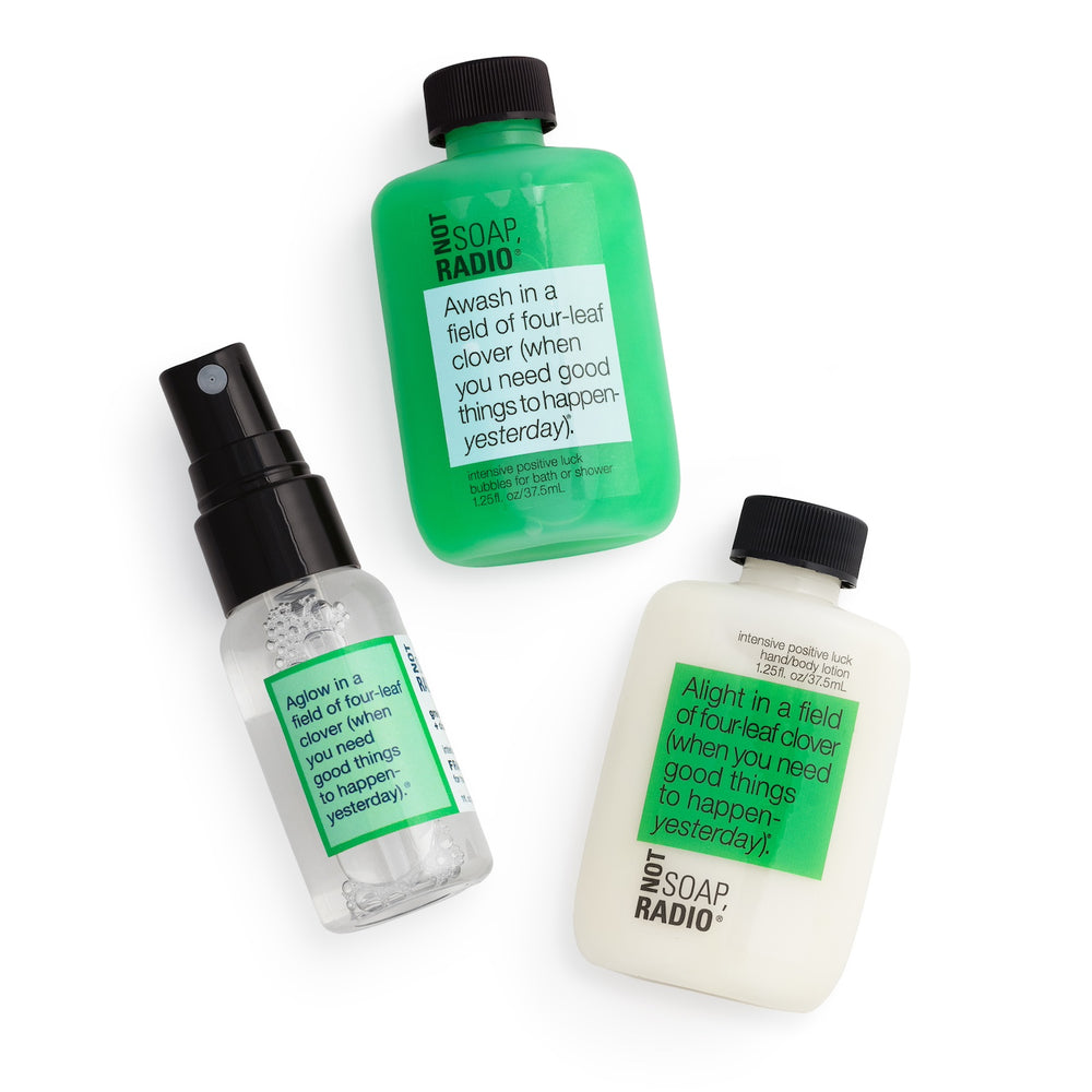If lately your lucky star has been eclipsed by rain clouds, find the clover and find yourself on the favored side of fate. Surround yourself with bubbles infused with extracts from a four-leaf clover-rich field in County Kerry on the Emerald Isle. An old Irish verse is as follows: One leaf for fame, One leaf for health, One for a faithful lover, And one for glorious wealth. That pretty much covers all the bases, doesn't it?